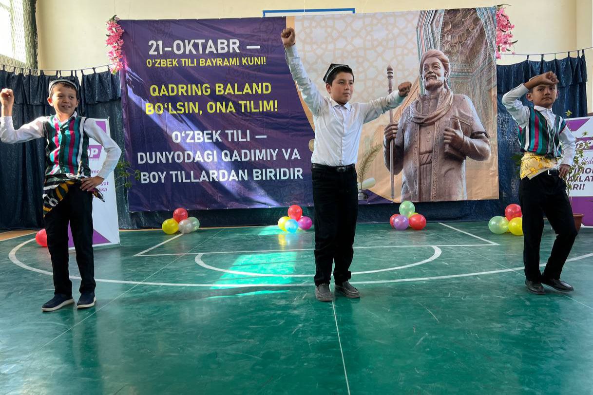 Shuningdek, tadbir davomida o‘quvchilar tomonidan ona tiliga bag‘ishlangan she’rlar, sahna ko‘rinishlari namoyish etildi.